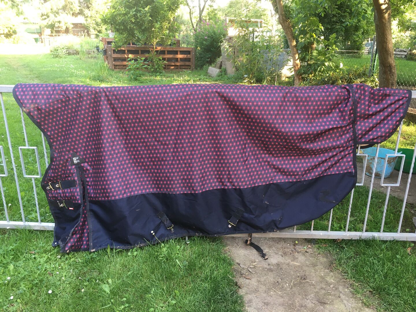 Dywanik zimowy, przeciwdeszczowy 300g, rozmiar 155, jak nowy - Piękna, ciepła derka przeciwdeszczowa z wypełnieniem 300 g. Tylko raz był na koniu. Funkcja odprowadzania potu, szeroki klin, sznurki na nogawkach, oddychające i wodoodporne, czyste. NP 150€