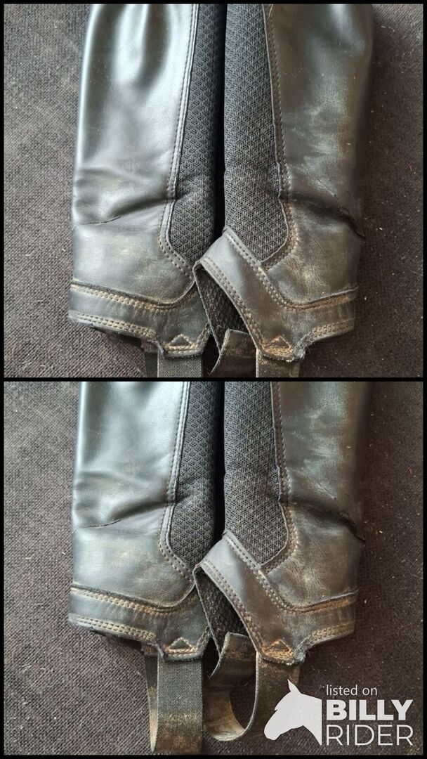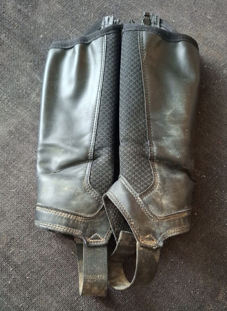 Dziecięce bryczesy jeździeckie rozmiar 30-32 - Dziecięce bryczesy jeździeckie w kolorze czarnym, rozmiar 30-32. Nadal w dobrym stanie, ale z oznakami zużycia.