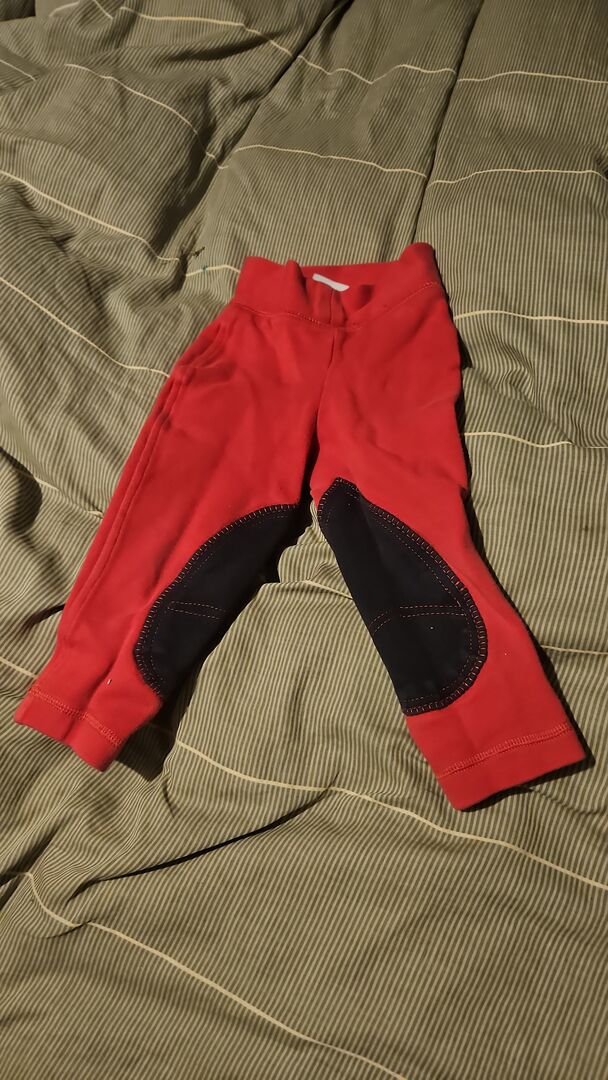 Dziecięce bryczesy jeździeckie rozmiar 98 - Rozmiar bryczesów 104 - stosunkowo małe. To, co wygląda na czerwone, jest w rzeczywistości różowe...