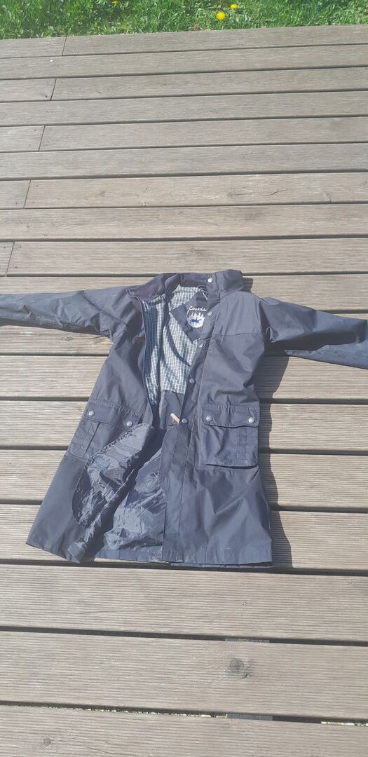 Dziecięcy płaszcz do jazdy konnej - Orzech 1x noszony płaszcz jeździecki dla dzieci, używaliśmy go do jazdy w terenie, jest jak nowy.