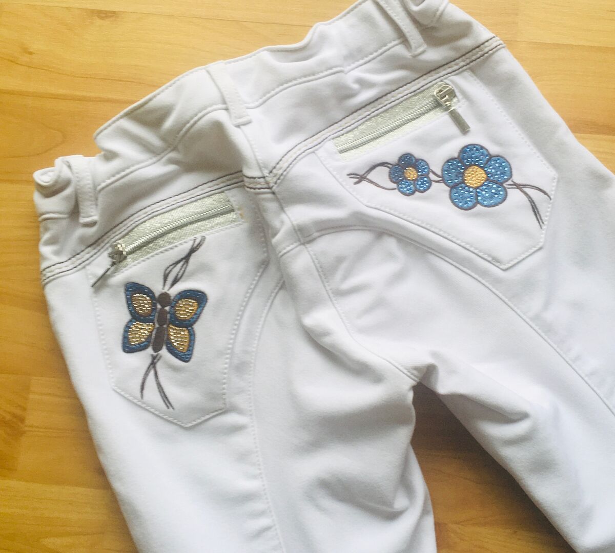 Dziewczęce bryczesy konkursowe - Misternie zdobione bryczesy konkursowe dla dziewczynek w wieku ok. 12 lat.