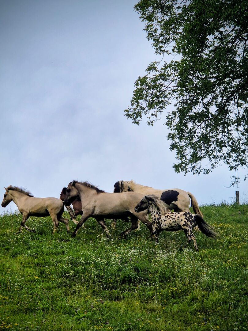 Czym są dzikie konie Liebenthaler? Celem tej rasy było odtworzenie nordyckiego typu pierwotnego. Przewalskie, "prawdziwe" dzikie konie, mają dokładnie taką samą budowę, jaką znamy z rysunków jaskiniowych. Były wielokrotnie krzyżowane - w przeciwnym razie rasa składa się z genów konika, norweskiego i islandzkiego. Te wytrzymałe rasy są odporne na każdą pogodę, łatwe do karmienia i oszczędne. Liebenthaler łączy w sobie wszystkie wspaniałe cechy rasy i ma słoneczne usposobienie i absolutnie przyjazną naturę.