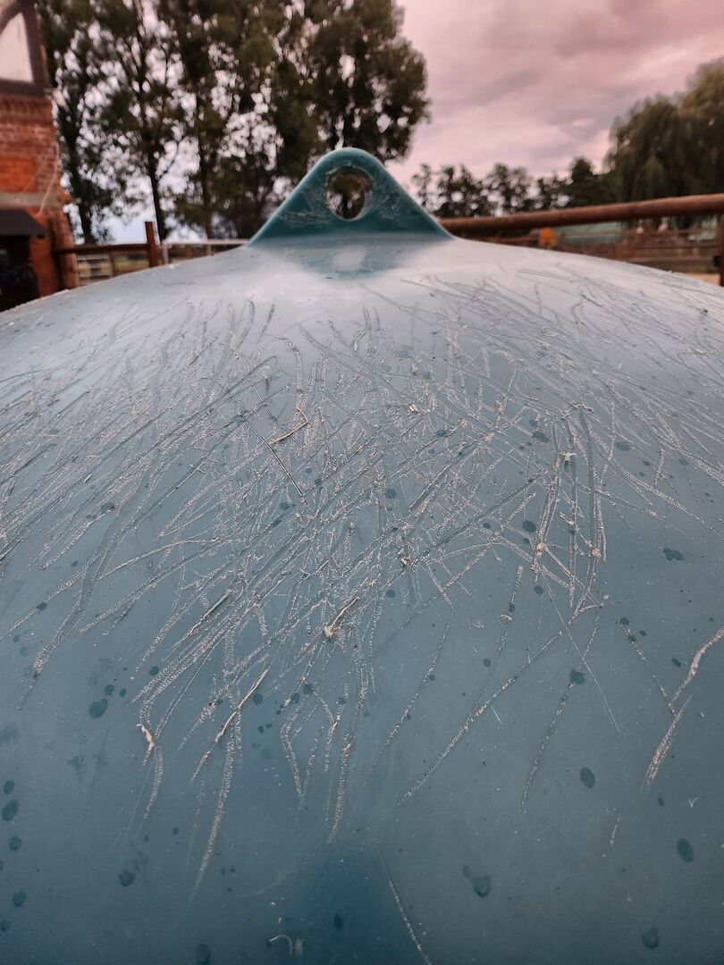 Dzwonek do siana od JFC - Dzwon do siana od JFC Sprzedawany tylko z powodu zakupu drewnianego stojaka na siano. Średnica wewnętrzna 1,70 m (mieści jedną belę). 4 miejsca do karmienia Posiada ślady zużycia (patrz zdjęcia)