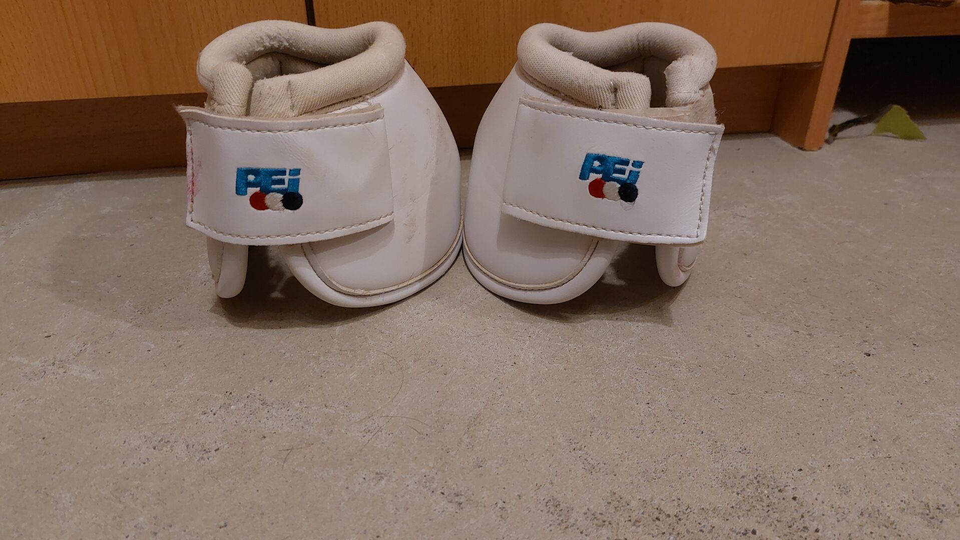 Dzwonki do kopyt PEI białe rozmiar XL - Na sprzedaż wysokiej jakości białe dzwonki do skoków z zabezpieczeniem beli.