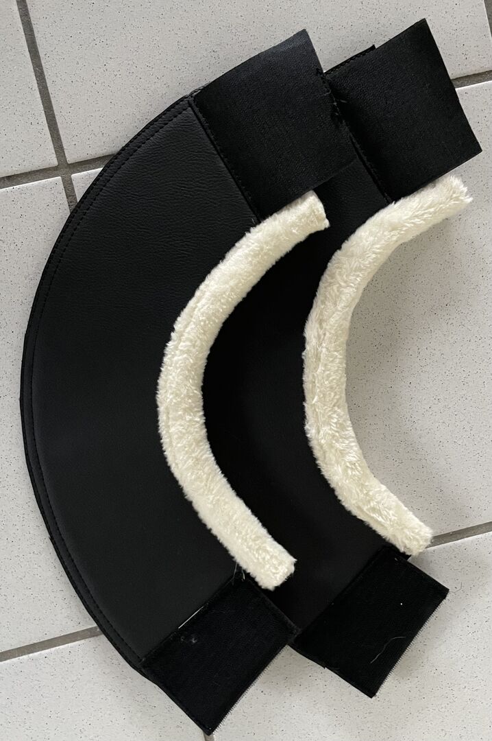 Dzwonki na kopyta Dzwonki do skoków - Nowe czarne dzwonki do skakania Kavalkade wykonane z neoprenu, na zewnątrz imitacja skóry, z futerkowym brzegiem. Rozmiar XL