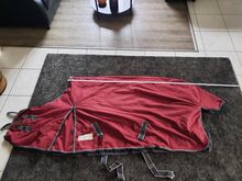 Ekonomiczny koc zewnętrzny 100g - Ta derka dla konia jest na sprzedaż. Zaimpregnowany i wyprany. Brak rozpoznawalnej rdzy. Dywan ma około 150 cm długości, mierzonej od kłębu do nasady ogona. LG LG