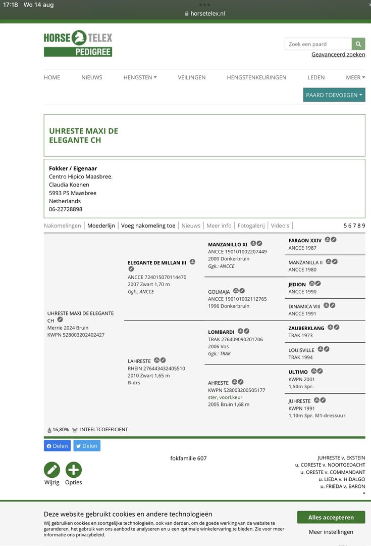 KWPN-Stute, ur. 20.03.2024 z PRE Deckhengst Elegante de Millan III i Lahreste (Lombardi x Ultimo) Erwartetes Endmaß: ok. 1,70 m