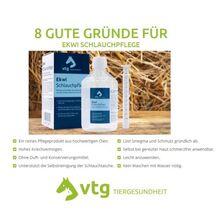 Ekwi Tube Care delikatnie usuwa smegmę, ułatwiając koniowi wyjmowanie i wkładanie rurki. Olej o niskiej lepkości w Ekwi Hose Care rozprowadza się szybko i na dużej powierzchni, rozprowadzając go równomiernie w kieszeni węża i na wężu.
