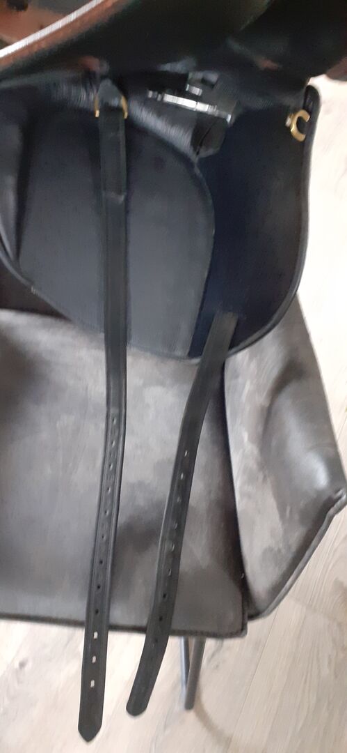Akcesoria: zupełnie nowy i nieużywany popręg z jagnięcej skóry, czarna filcowa podkładka pod siodło ze sznurkiem i anatomiczny popręg z jagnięcej skóry Mattes w rozmiarze 80 cm.