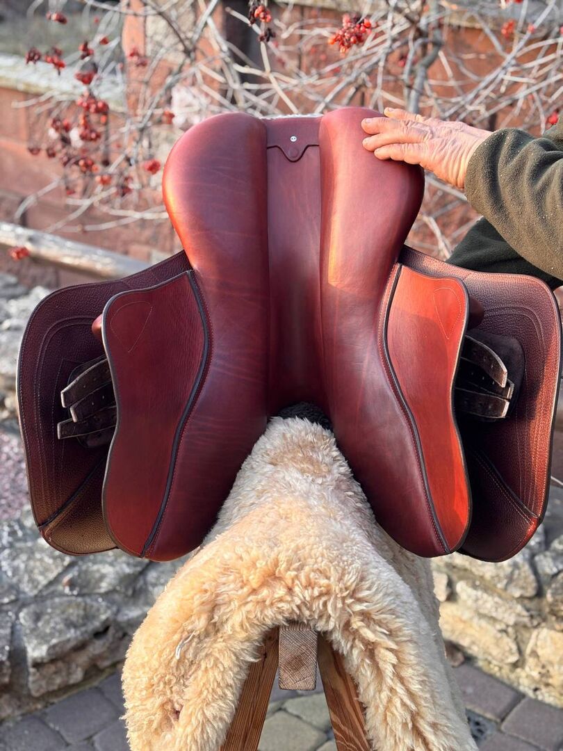 Die anatomisch geformte Sitzfläche bietet einen sicheren und ausbalancierten Sitz, während die weich gepolsterten Kniepauschen optimalen Halt und Bewegungsfreiheit gewährleisten. Die sorgfältige Verarbeitung und die ergonomische Passform sorgen für eine ideale Druckverteilung – sowohl für Reiter als auch für das Pferd.