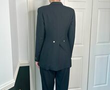 Elite Women’s Dressage Show Jacket Black Size 8 or M/L Used and Excellent Condition Has 4 Silver Button on Front and 2 Silver Buttons on Back Jacket comes in at the waist, has a fitted, hourglass outline