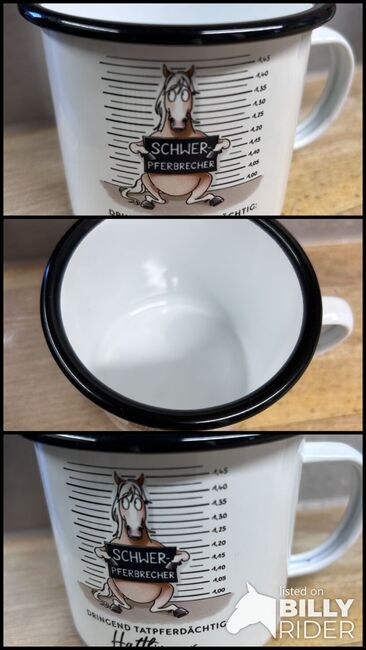 - Biały emaliowany korpus z czarną obwódką - Humorystyczne zdjęcie policyjne z Haflingerem - Napis "Heavy horse mug" z liniami pomiarowymi - Solidna jakość emalii do codziennego użytku - Praktyczny uchwyt zapewniający pewny chwyt