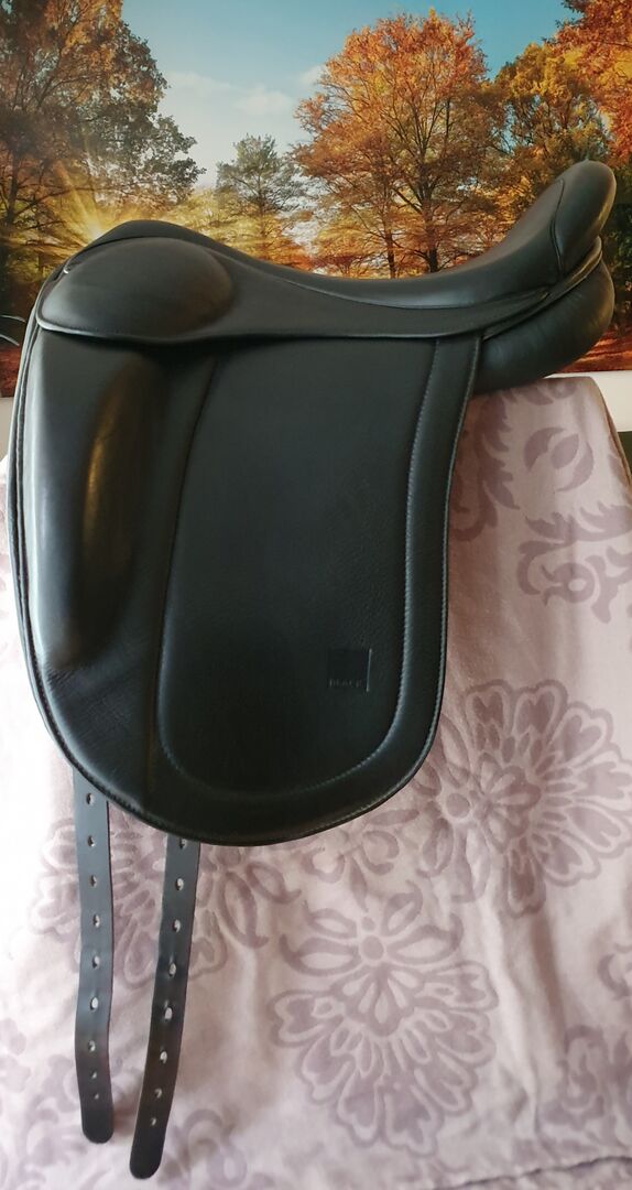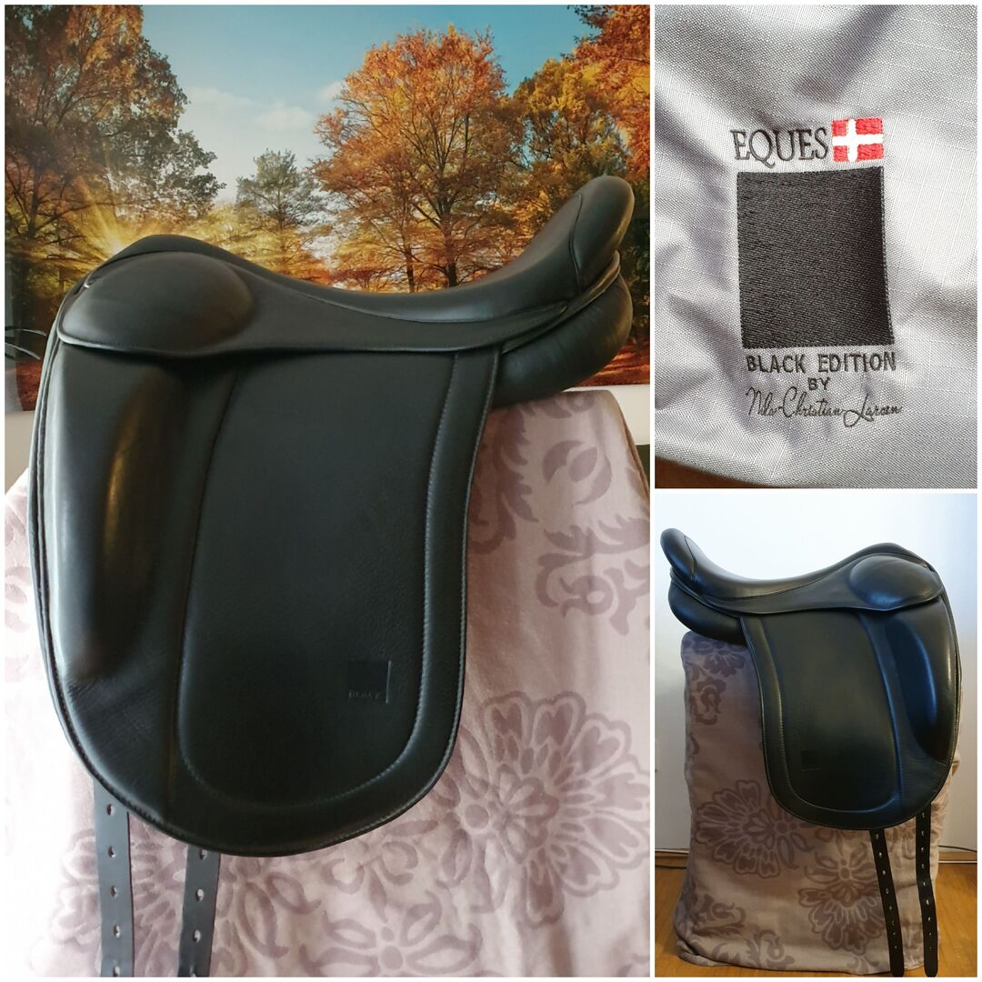Eques Black Isändersattel 17,5 cala - EQUES Black - zaprojektowane we współpracy z Nilsem-Christianem Larsenem Siodło Eques Black, ok. 1 rok użytkowania 17,5 cala, lateks, głębokie siedzisko z czerwoną płytą wpustową (średnia), wymienna stan bardzo dobry, zawsze przechowywane w suchym miejscu odbiór lub wysyłka