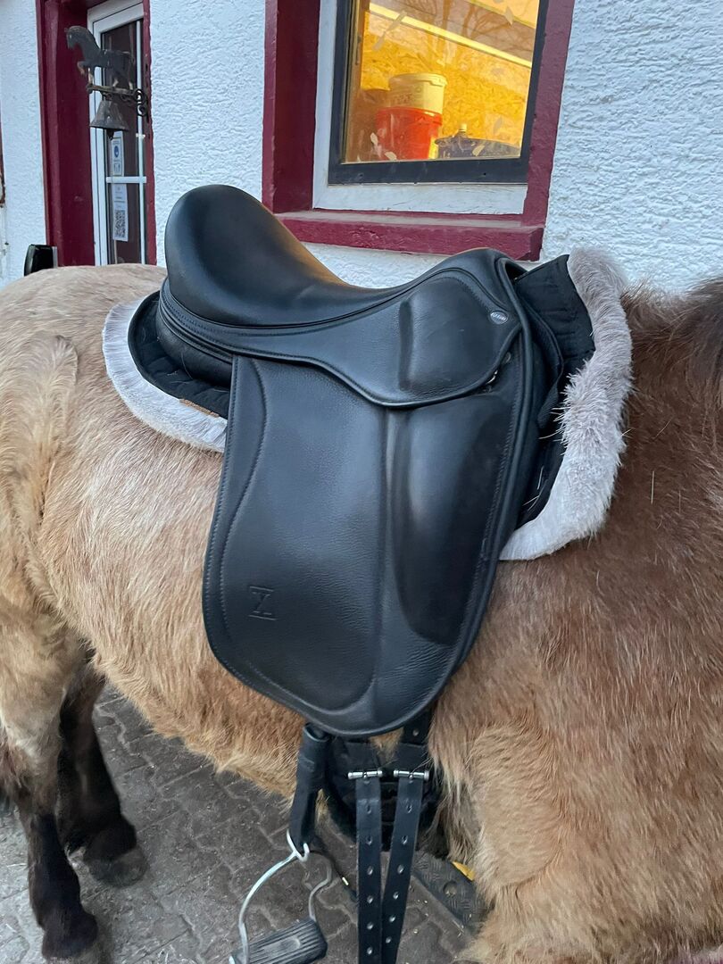 Siodło było używane kilka razy w tygodniu przez rok, regularnie czyszczone i konserwowane (ok. 1x/miesiąc), więc jak na swój wiek jest w bardzo dobrym stanie. Na siedzisku znajduje się nierówność (patrz zdjęcie), która nie jest zauważalna i nie stanowi wady. Wynika to prawdopodobnie z interakcji pomiędzy tapicerką siedziska a wysokim kantarem, który pod obciążeniem "dociska" skórę do siebie. Jednocześnie jednak właśnie ta kombinacja prowadzi do bardzo wygodnego, obramowanego i tym samym bezpiecznego uczucia siedzenia. Prawdziwe odciążenie, zwłaszcza przy pracy z młodym koniem lub w crossie. Siodło ma świetny krój, który dobrze pasuje do wielu naszych koni islandzkich, również inne konie mogą jeździć z tym siodłem bez problemu.