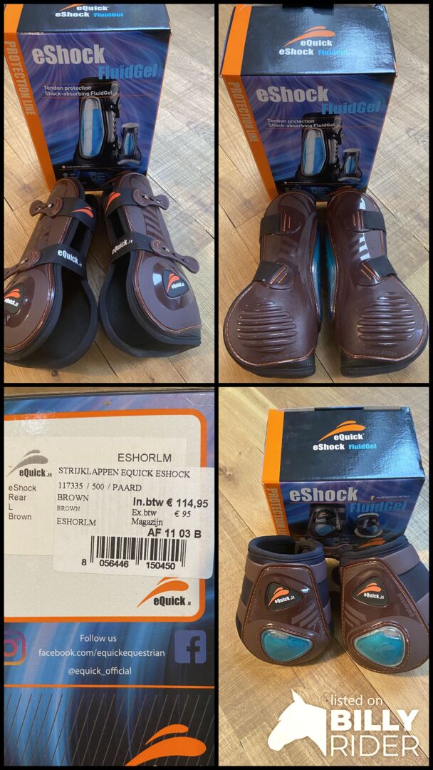eQuick Gaiters and Fetlock Boots *Nowość* - Świetne buty skokowe o wysokim komforcie noszenia dla konia i optymalnym dopasowaniu w rozmiarze L dla koni pełnej krwi. Są one szczególnie trwałe dzięki zastosowaniu materiałów wysokiej jakości. Elastyczny pasek pozwala im dopasować się do nogi konia, a płynny żel zmniejsza obciążenie nogi konia.