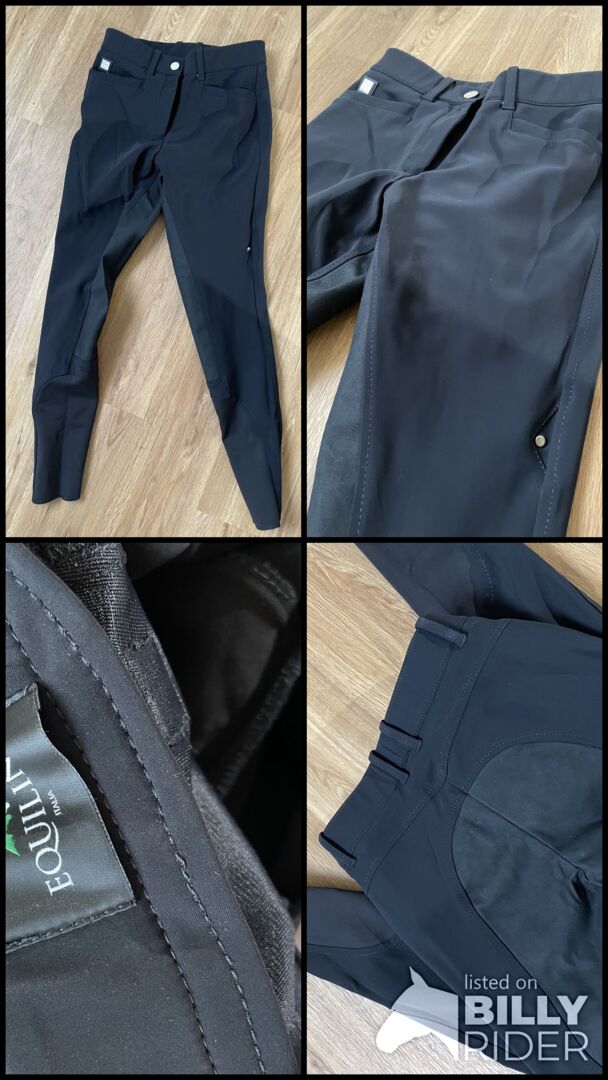 Equiline bryczesy jeździeckie pełne siedzenie czarne rozmiar 36 - Piękne gładkie bryczesy firmy Equilin z pełnym siedziskiem, oddychający materiał, założone tylko 2x. Więcej zdjęć na życzenie!