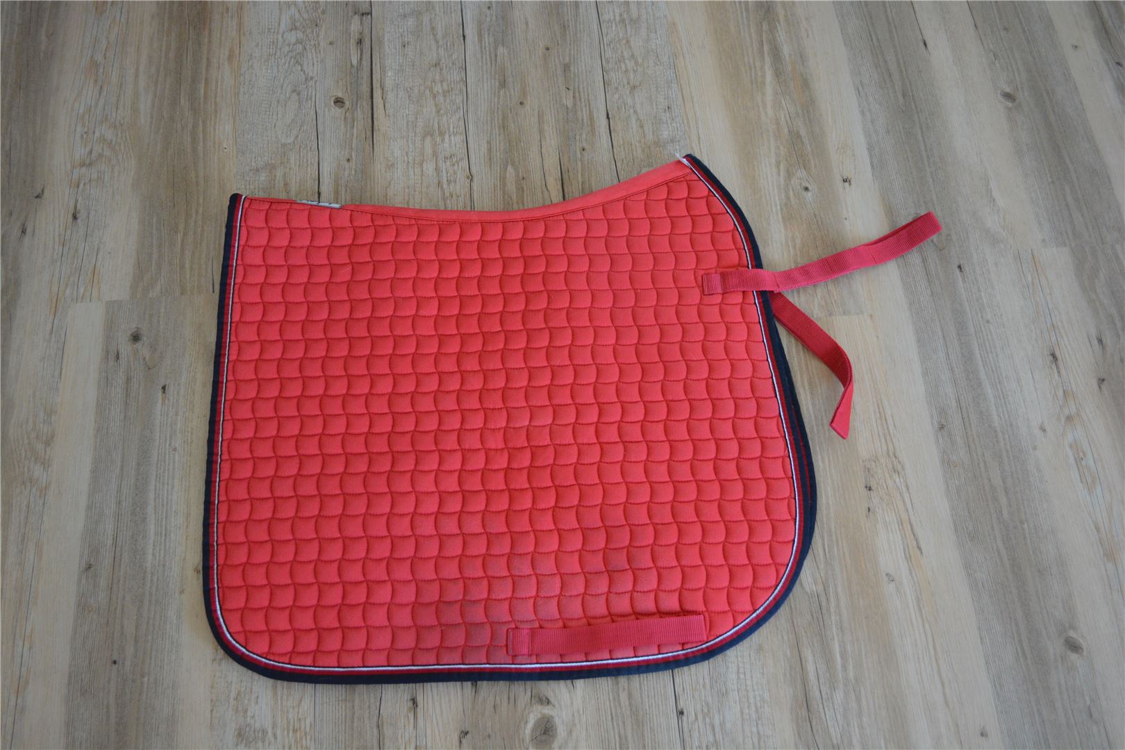 Eskadron Papryczka chili Dressur czerwony - Mam do zaoferowania czerwony pad pod siodło ujeżdżeniowe Eskadron Cotton (DL) w idealnym stanie. Był noszony tylko dwa razy na koniu. Jest w kolorze chili czerwonym z ciemnoniebiesko-białą obwódką. Brak przetarć, dziur i rozdarć. Włosie końskie zostało usunięte w najlepszy możliwy sposób. Podkładka pod siodło jest świeżo wyprana. Bez wymiany!