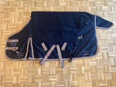 Eskadron Pasture Blanket - Kolor jest raczej czarny, a nie niebieski, jak wydaje się na zdjęciach. Rozmiar S, praktyczne i dobrze regulowane zapięcia na klatce piersiowej, paski na brzuchu i sznurki na nogawkach, lekka podszewka z tyłu. Używane, ale w dobrym stanie. Cena zawiera przesyłkę