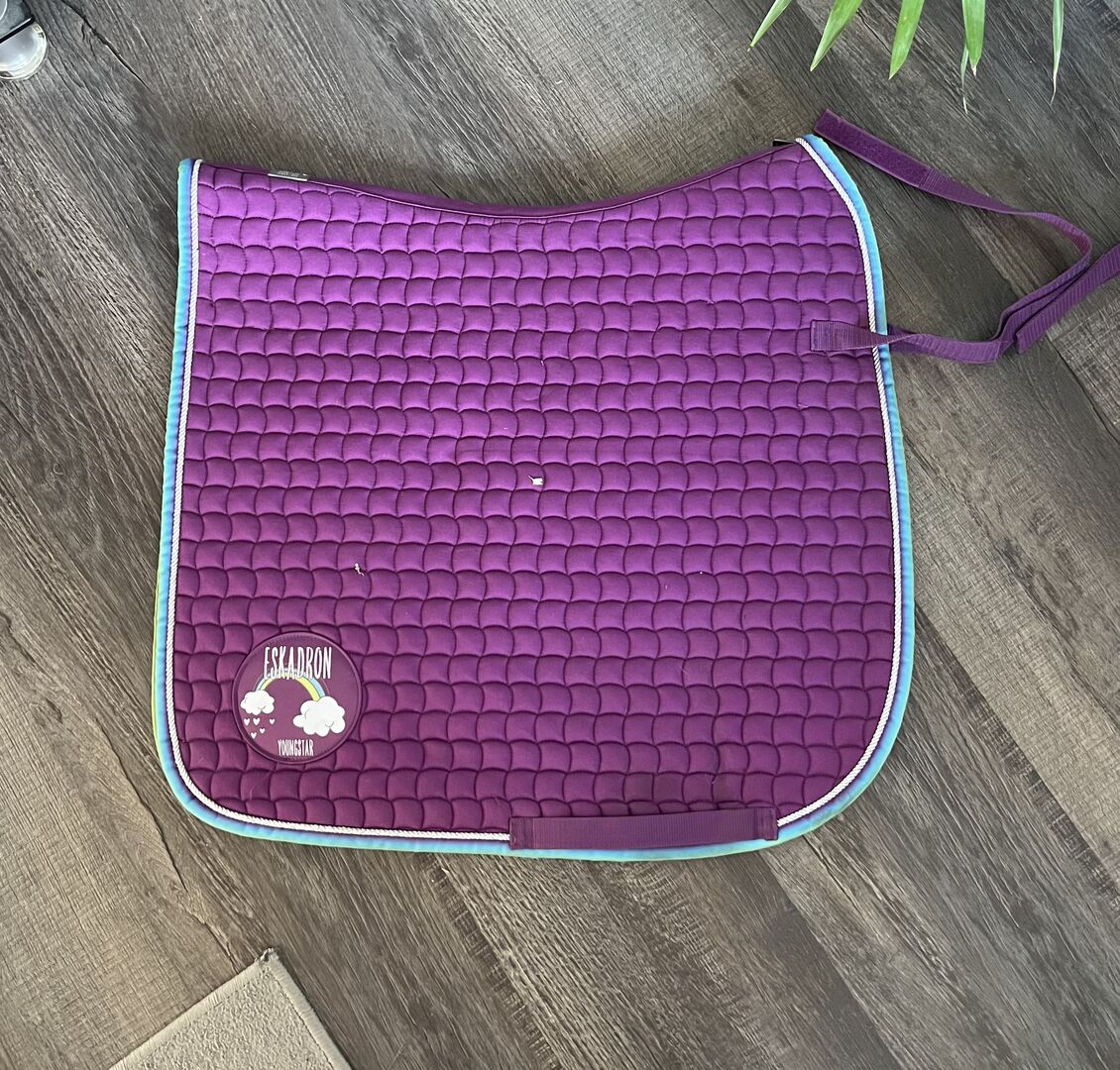 Eskadron Saddle Pad Youngstar DL - Sprzedam podkładkę pod siodło Eskadron Youngstar DL w kolorze fioletowym z pasującymi bandażami.