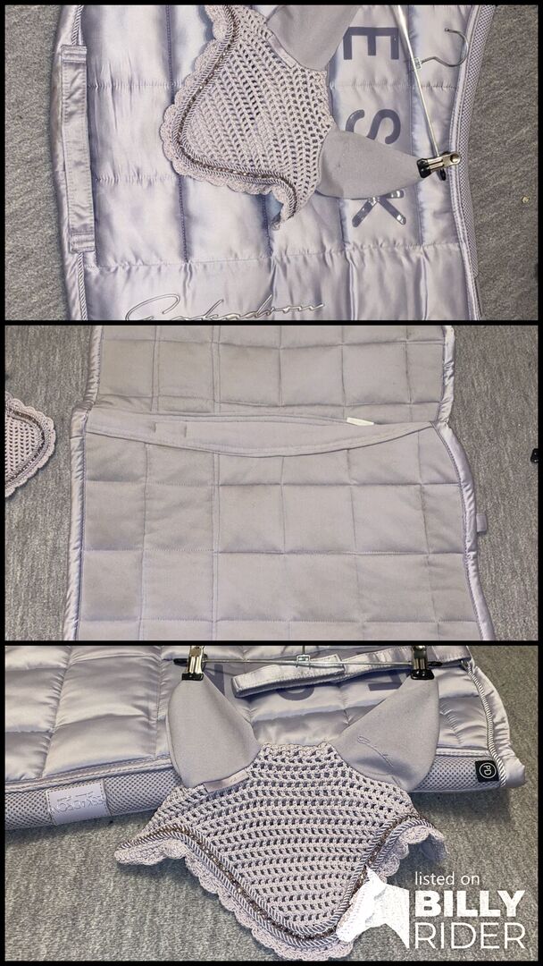 Podkładka pod siodło to "Mattglossy Classic Sports 22", rzadko używana i świeżo wyprana. Maska to "Classic Sports FS22 Crystal", jest zupełnie NOWA! Rozmiar PD/pony, ale pasuje również pod siodło WB.