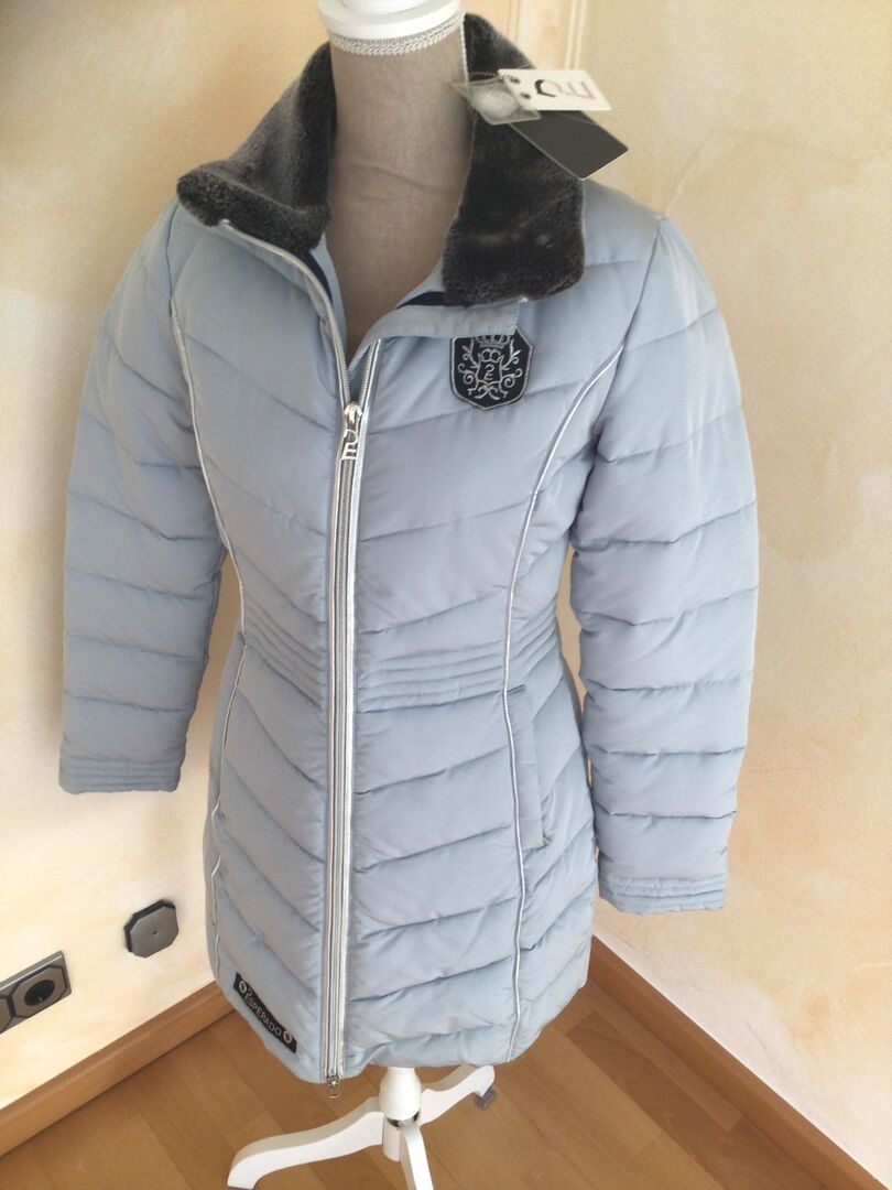 Esperado kurtka pikowana nowa - Wysokiej jakości, ciepły, ale lekki i wygodny płaszcz zimowy Esperado w modnym kolorze ICE Blue. Oddychający płaszcz jeździecki z futrzanym kołnierzem. kołnierz z futra. Dwukierunkowy zamek błyskawiczny, idealny do jazdy konnej.