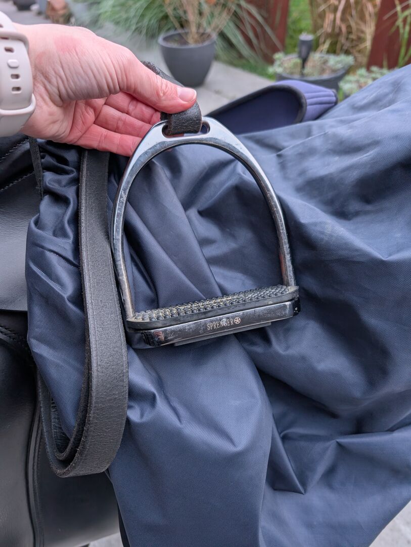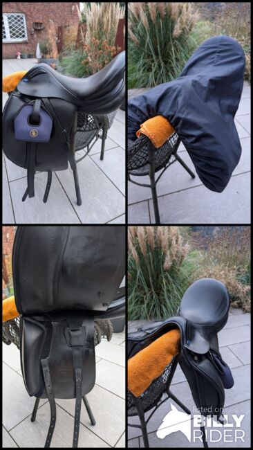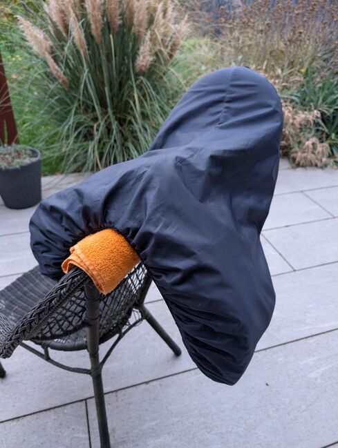 Siodło jest datowane na 8.5.23 i było na naszej klaczy bardzo mało. W cenę wliczone są skóry strzemion, strzemiona, podkładki pod siodło i pokrowiec na siodło.