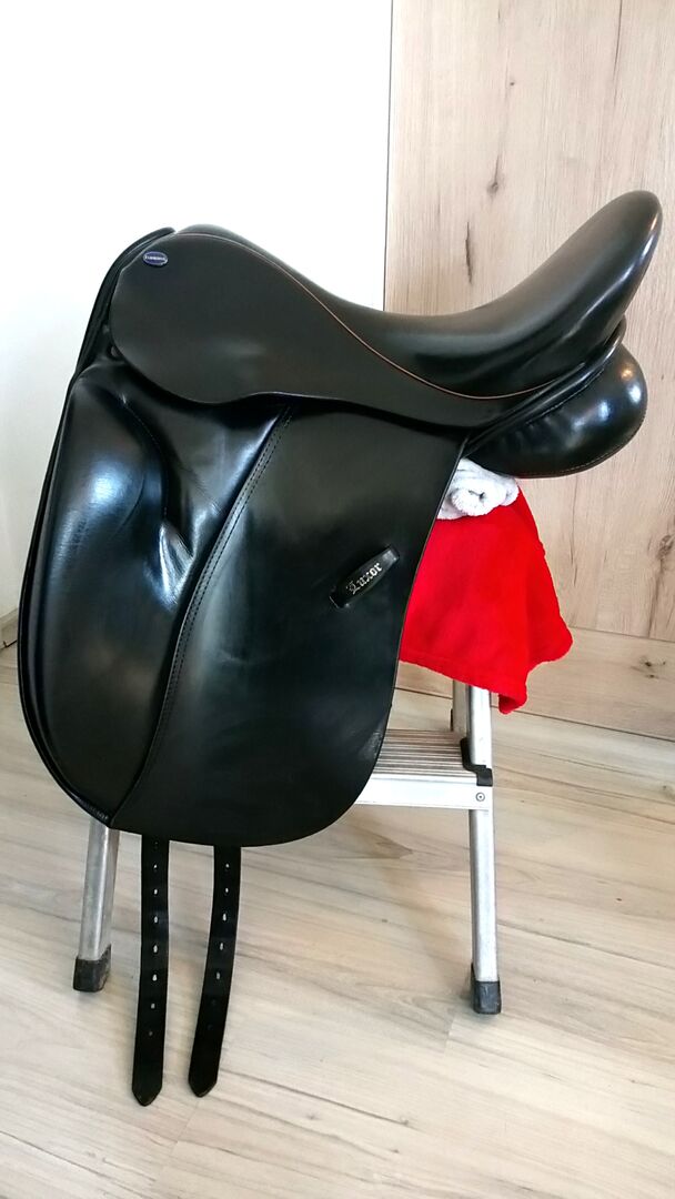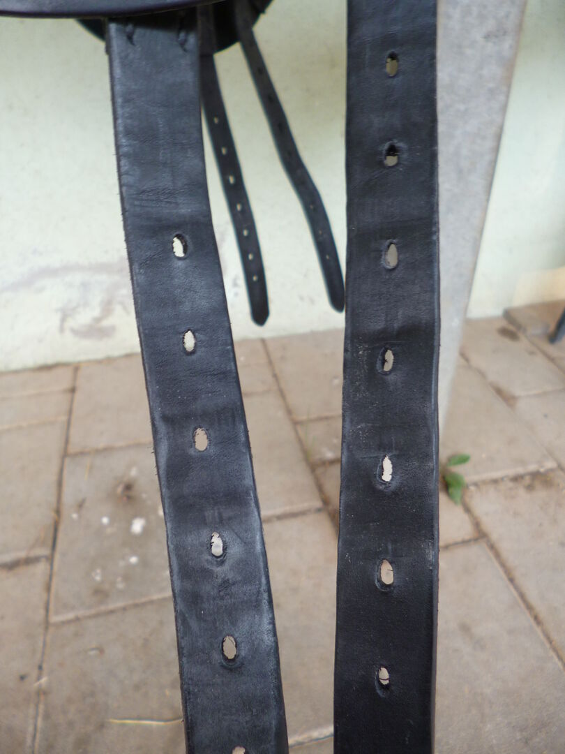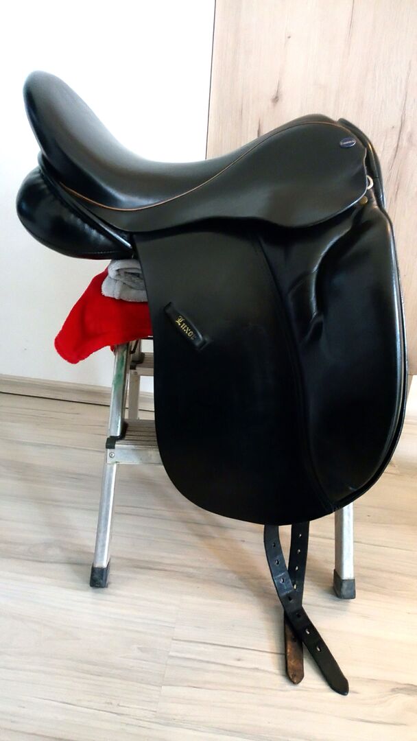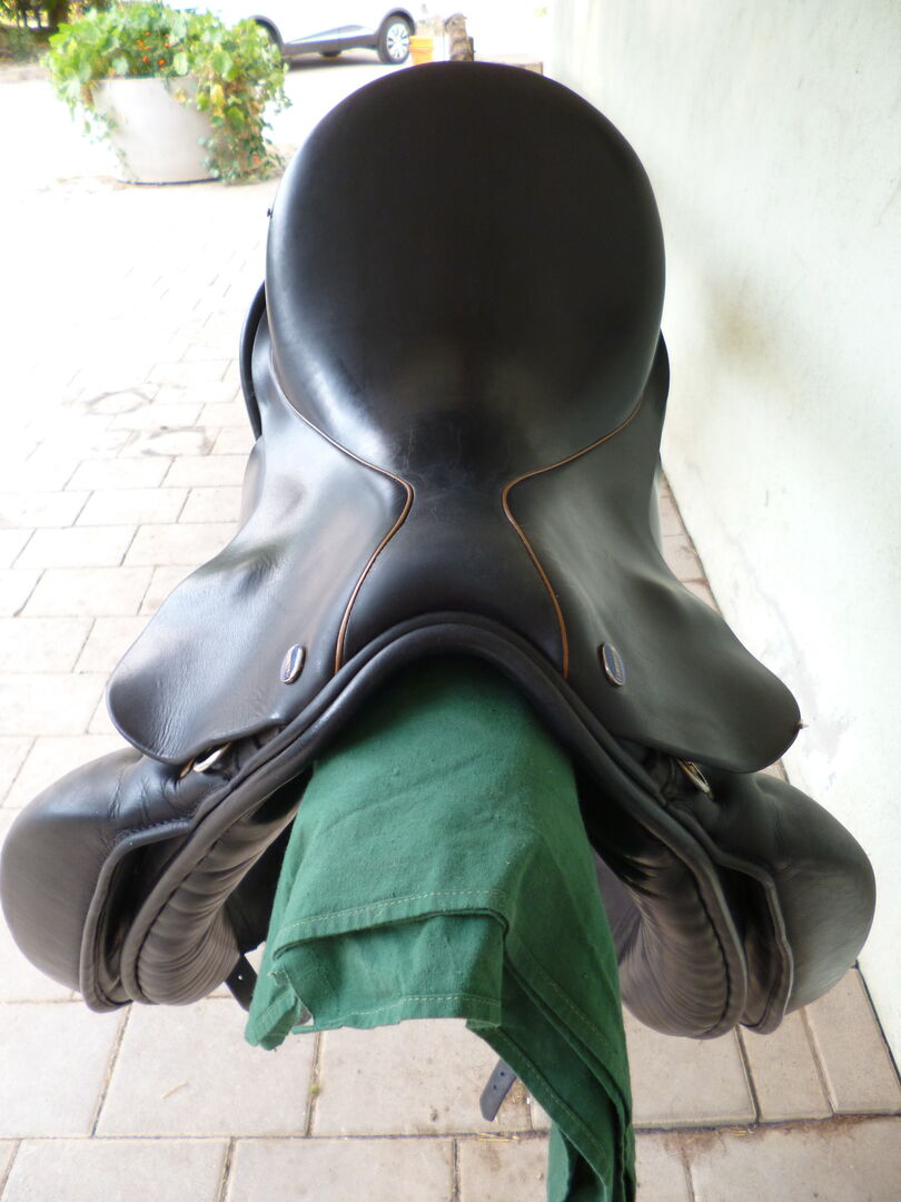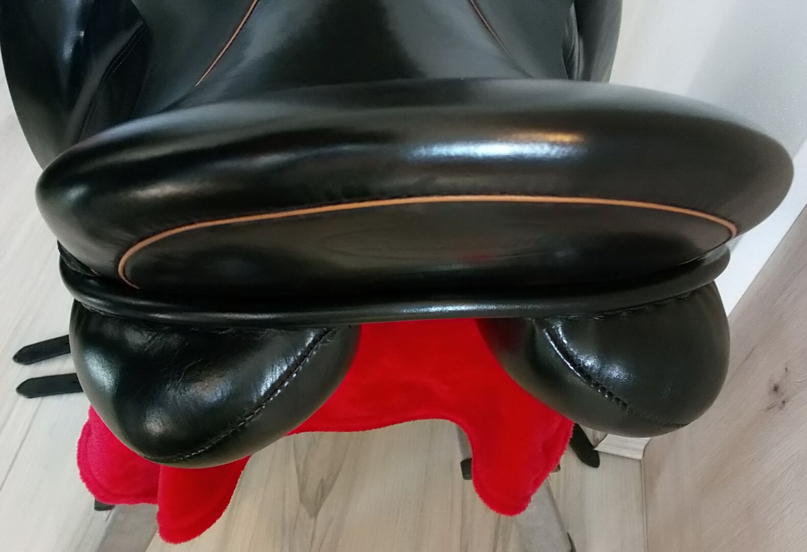 - był na koniu ciepłokrwistym o średniej wysokości w kłębie i "minimalnym" huśtawce w grzbiecie - w lipcu 2019 r. całkowicie nowe (miękkie) wyściełane (ze względu na możliwe plany sprzedaży), zaprojektowane dla jeźdźca o wadze 85 kg - od tego czasu przechowywane w piwnicy na stojaku na siodła