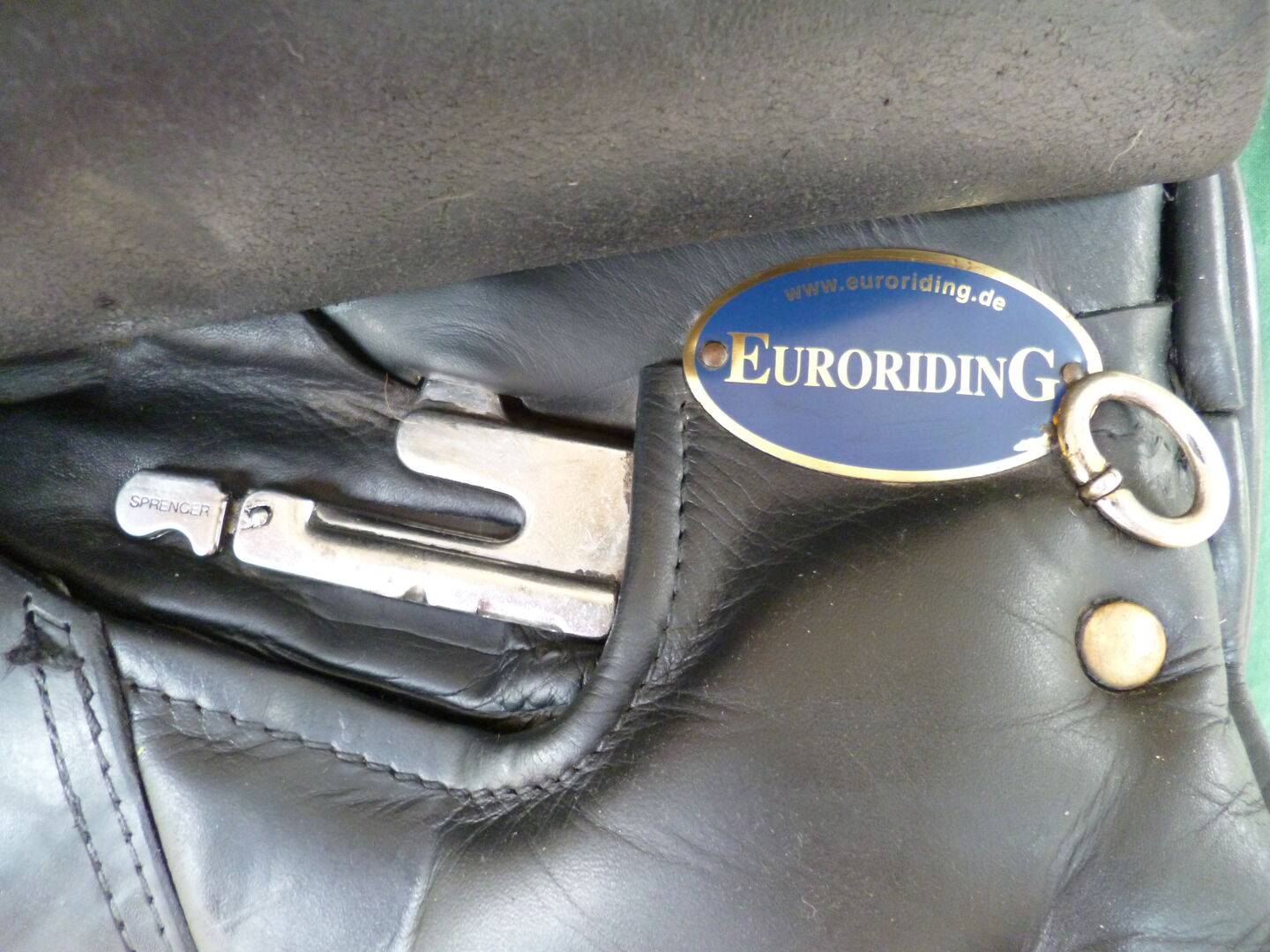 EURORIDING LUXOR DRESSUR SADDLE 17" sprężynowe drzewo elastyczne używane - Siodło EURORIDING LUXOR DRESSUR 17" używane nowo wyściełane i nowo wyczyszczone dla ciebie i twojego konia (patrz zdjęcia z czerwoną tkaniną jako podkładem)