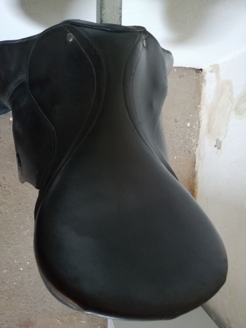 KW regulowana przez rymarza w dowolnym momencie. Siodło było regularnie czyszczone i smarowane i jest w dobrym stanie. Siodło było regularnie sprawdzane przez rymarza i zawsze wisiało suche w siodlarni w ogrzewanym pomieszczeniu. Ponieważ jest to starszy model, niestety nie mogę już powiedzieć, jaki to dokładnie model.