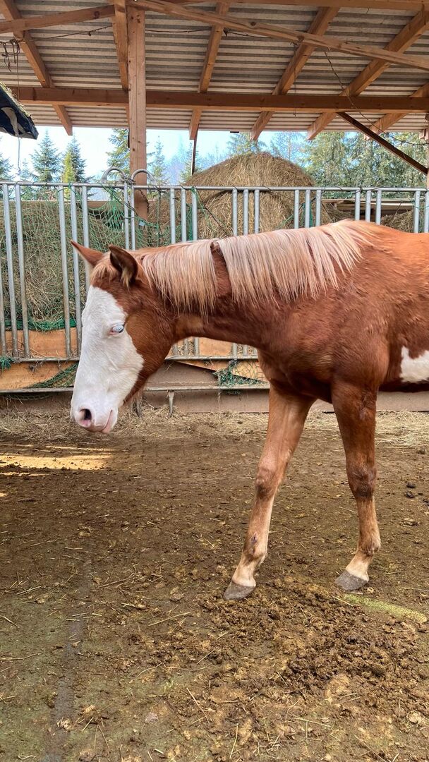 Eyecatcher z 2 niebieskimi oczami - Lokalizacja: 76703 Kraichtal LF Masson Whiz Gun - ten wspaniały młody ogier rasy Paint Horse, urodzony w 2024 roku, o szacowanym ostatecznym wzroście 152 cm, przyciąga uwagę wszystkich swoim przyciągającym wzrok umaszczeniem. Całości dopełniają jego niebieskie oczy i prawidłowa budowa. Jego charakter jest również wyjątkowy, zawsze w dobrym nastroju i bardzo dobrze wychowany. Jest wyluzowany i nieustraszony w otaczającym go świecie. Masson zna źrebięce ABC, jest wyszkolony na halterze i uwielbia być pielęgnowany. Oczywiście zna swojego kowala i weterynarza, jest regularnie szczepiony i odrobaczany. 5-panelowy n/n po rodzicach. Młody ogier ma dobry rodowód reiningowy. Ogier ma w swoim rodowodzie wiele wspaniałych ogierów reiningowych, takich jak Colonels Smoking Gun, Topsail Whiz, Peppy San Especial i Gatling Gun. Jeśli szukasz niezawodnego, wszechstronnego młodego konia, to dobrze trafiłeś. Obecnie wykazuje nieco staxelixowy wzorzec chodu tylnego zadu - tylko częściowo zgina kopyta - ale został prześwietlony i nie stwierdzono żadnych nieprawidłowości. Stąd korzystna cena.