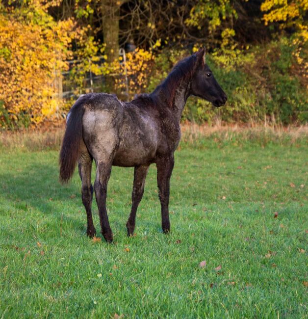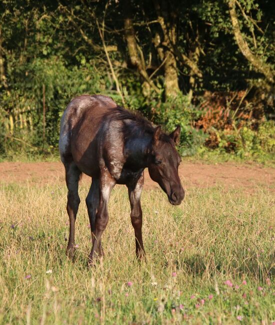 Fantastyczny niebieski ogier rasy roan quarter horse - Lokalizacja: 66916 Breitenbach Just Be Blue Sky - ten piękny ogier rasy Quarter Horse, urodzony 9.4.2025, zachwyca swoim przyciągającym wzrok niebieskim umaszczeniem i oczekuje się, że osiągnie ostateczny wzrost od 150 do 154 cm. Blue jest 5-panelowy n/n po rodzicach. Będzie dorastał zdrowo i odpowiednio do gatunku w stadzie z innymi młodymi końmi. W momencie przekazania zostanie zaszczepiony i odrobaczony stosownie do swojego wieku. Będzie znał weterynarza i kowala. Zachwyca otoczenie swoim uroczym charakterem. Jest przytulny i fajny i lubi odkrywać swoje otoczenie. Blue jest obsługiwany codziennie i jest dobrze wychowany i nieskomplikowany. Już teraz pokazuje swoje wspaniałe ruchy podczas zabawy. Dzięki dobremu, wszechstronnemu rodowodowi, prawdopodobnie będzie bardzo odpowiedni do sportu i / lub jako lojalny towarzysz rekreacji. Będzie sprzedawany z pełnymi papierami AQHA i paszportem konia.