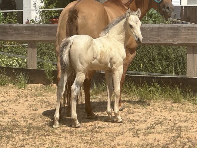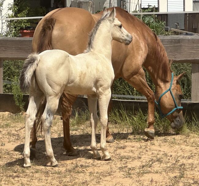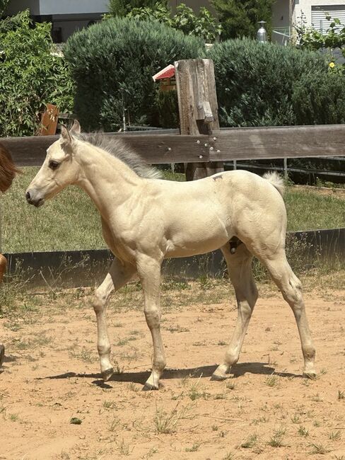 Fantastyczny ogier rasy Buckskin Paint Horse - sportowy i uroczy! - Lokalizacja: 34396 Liebenau Generał Nixxon - piękny ogier rasy Paint Horse (ur. 5.25, ostateczny wzrost ok. 145 cm) zachwyca uderzającym umaszczeniem buckskin, prawidłową, zwartą i mocną budową, a także dobrym umięśnieniem. Zdrowy, silny i o świetnych podstawach - przyciąga wzrok! Ogier dorasta w stadzie z innymi końmi w tym samym wieku i jest całkowicie akceptowalny społecznie. Jest codziennie obsługiwany, zna swojego weterynarza i kowala przy odbiorze, jest regularnie odrobaczany i szczepiony zgodnie ze swoim wiekiem. Charakter Nixxona jest przekonujący na całej linii: bardzo czuły i zorientowany na ludzi, milutki, dobrze wychowany, nieskomplikowany i fajny. Uwielbia pieszczoty i świetnie się porusza - jest idealny do rekreacji i zawodów. Jego rodowód przyprawia o szybsze bicie serca - wnuk HR Mobster/Gunnersaurus Rex. Ma najlepsze predyspozycje do tego sportu, ale przez cały czas pozostaje przyjemny w obsłudze. Prawdziwa perełka dla osób szukających utalentowanego, kochającego młodego konia z dużym potencjałem!