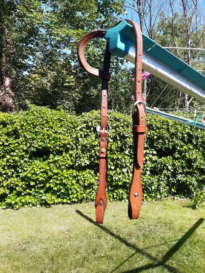 Fantazyjny snaffle z pojedynczym uchem - Fantazyjny snaffle z jednym uchem. Podwójnie szyte, śruby chicagowskie, mało używane.