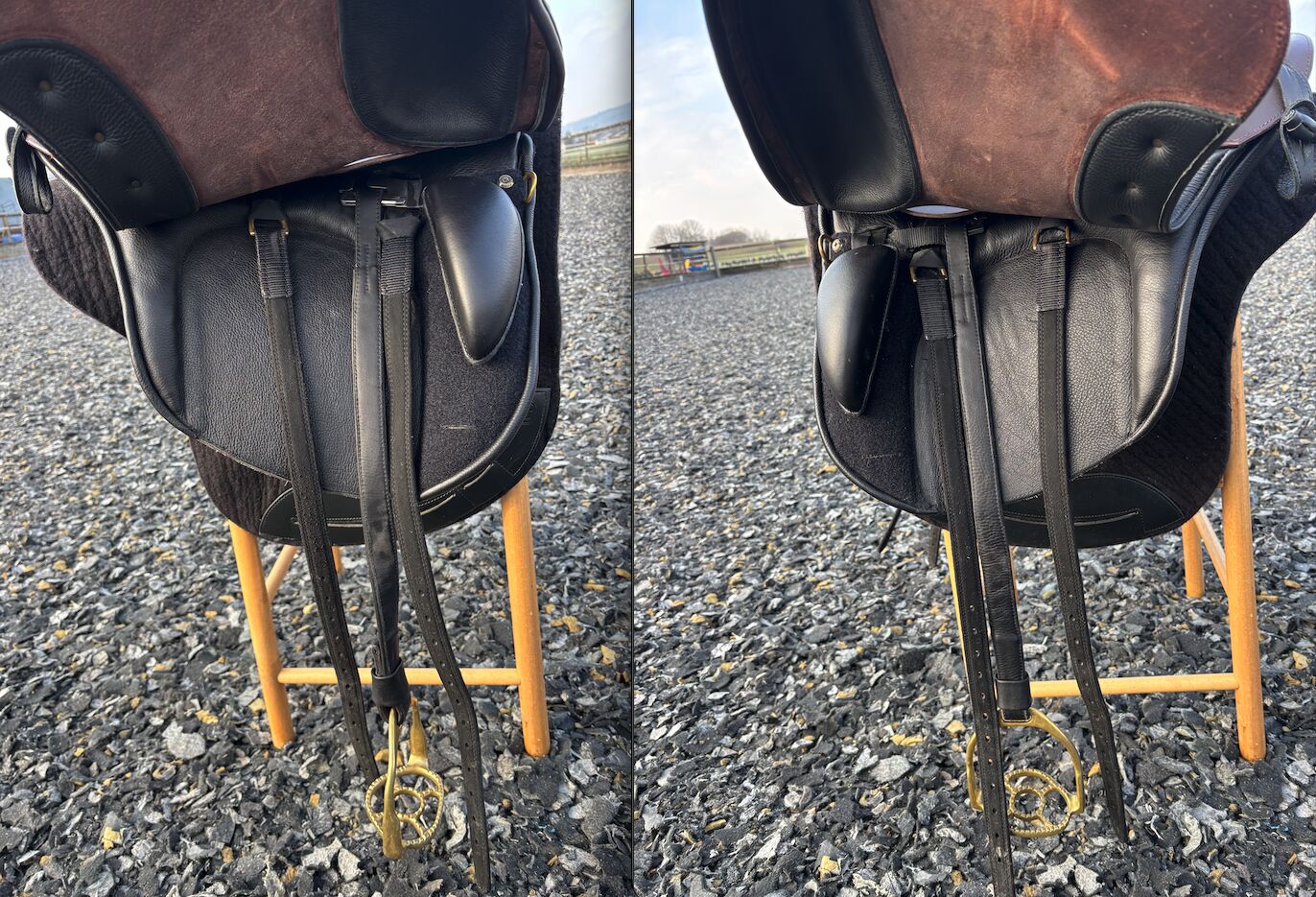 Der Sattel liegt stabil, gibt ein ausbalanciertes Sitzgefühl und lässt sich dank verstellbarem Kopfeisen sehr gut an verschiedene Pferderücken anpassen.