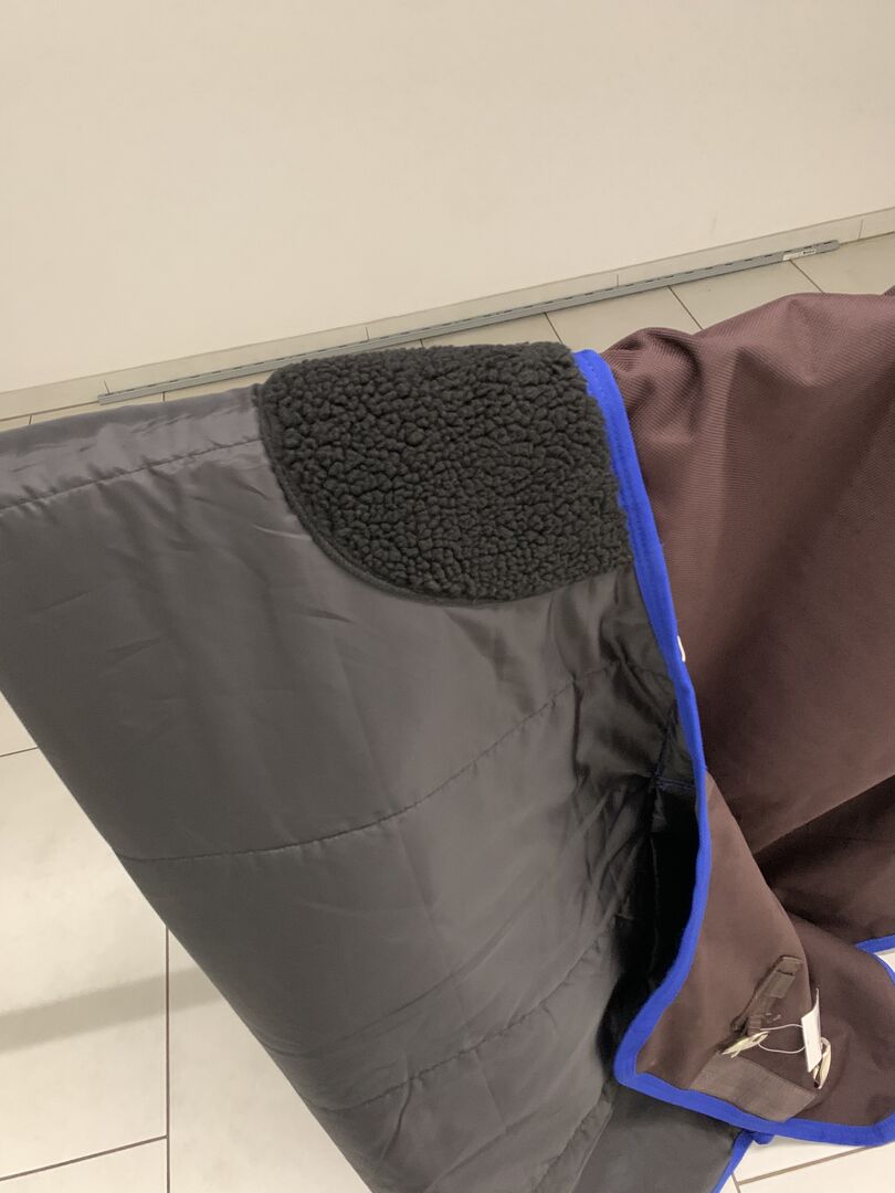 Fedimax Rainmax Outdoor Blanket NEW - Super wytrzymały dywanik zewnętrzny 100g, 135 cm, 1800 denier, słup wody 6.000-10.000 mm, mimo to przepuszcza parę wodną (wilgotne konie wysychają). Etykieta obecna, była tylko na koniu do przymiarki z derką ochronną, niestety nie pasuje.