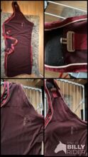 Felix Bühler derka do ćwiczeń dla koni 145 cm bordowa - Dywanik przeciwpotny Felix Bühler dla chodzącego konia lub do chodzenia, jest krótszy na przednim ramieniu niż zwykłe dywaniki, aby zapobiec otarciom. Używany tylko ok. 3 razy, dlatego prawie jak nowy. Rozmiar 145 cm