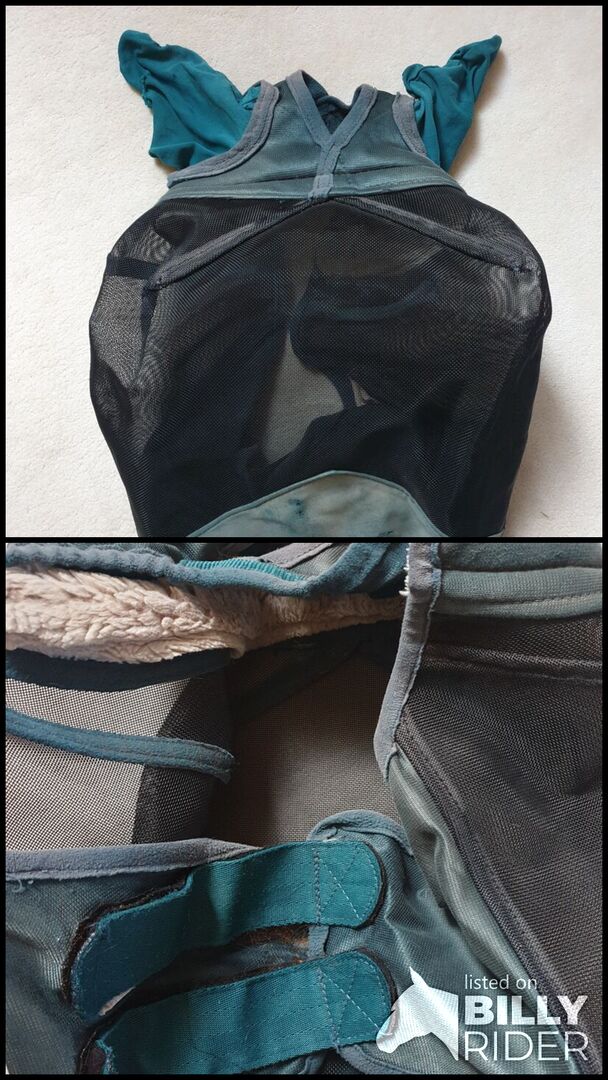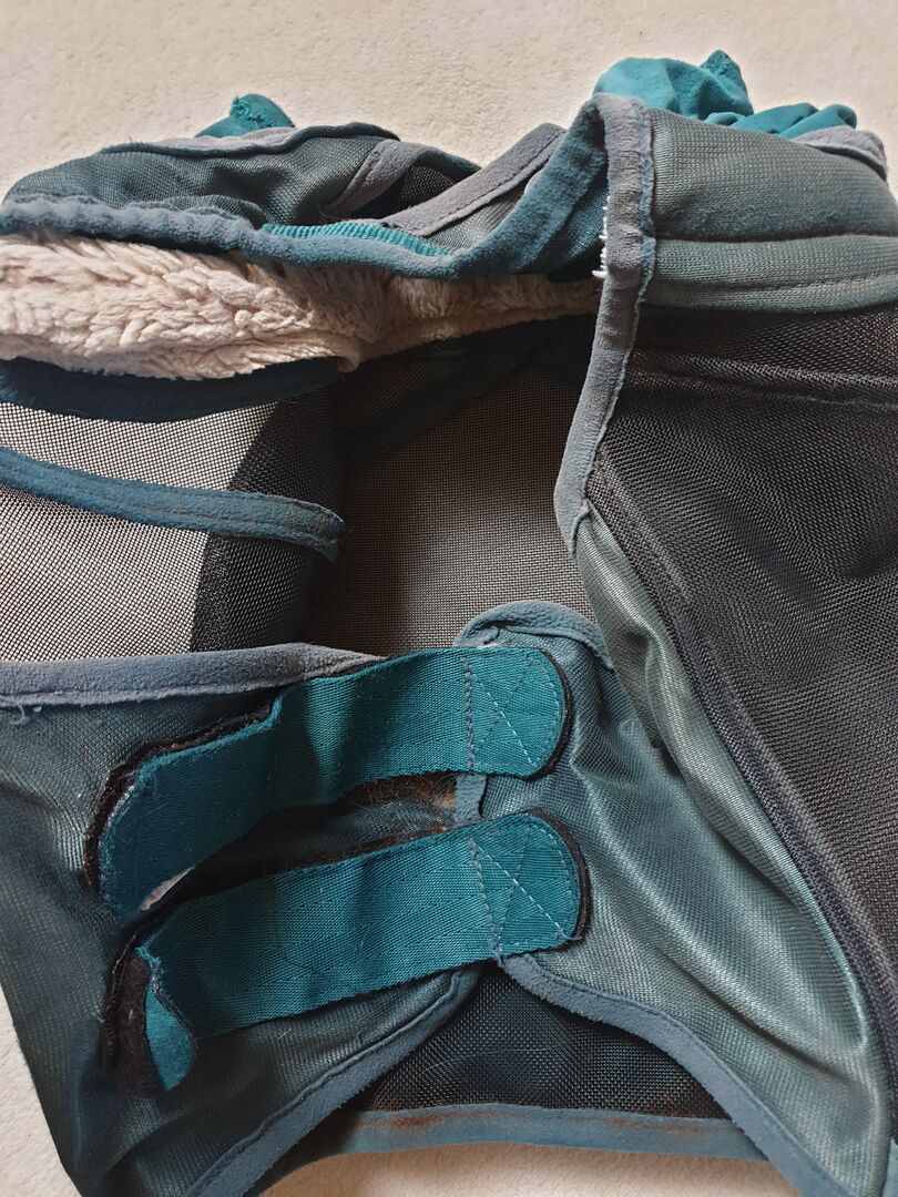 Felix Bühler Fly Mask - Bardzo często noszona maska na muchy, ma już kilka przeszyć na uszach. Nie ogranicza to jednak jej funkcjonalności!