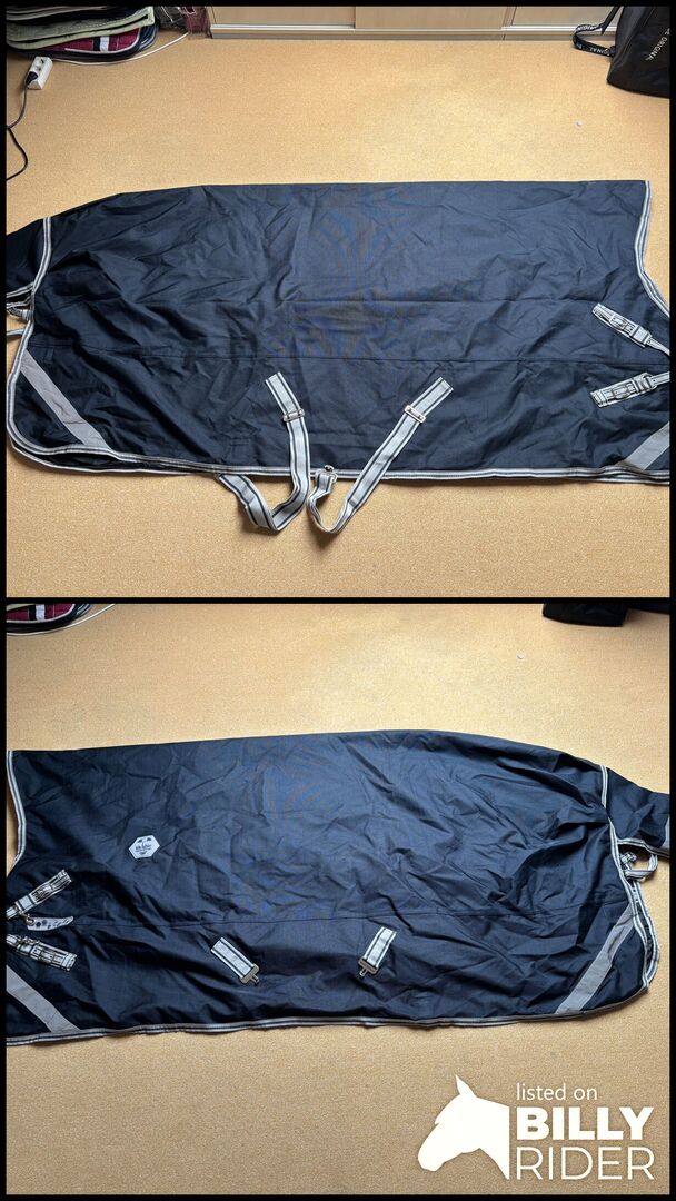 Felix Bühler Highneck dywanik zewnętrzny 100g, 155 cm - Oferuję ciemnoniebieski dywanik outdoorowy 100g od Felix Bühler. Model nazywa się "Paddock Reglective" i ma wysoką szyję. Dywan jest absolutnie jak nowy, był na koniu tylko kilka razy i jest świeżo po pralni chemicznej. Nie ma żadnych rozdarć, plam itp. (NP: 139€)