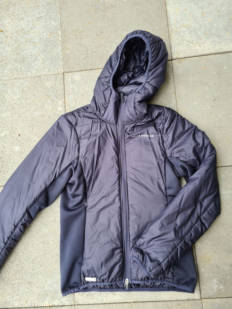 Felix Bühler Kurtka kombinowana z kapturem navy S - Felix Bühler Kurtka kombinowana z kapturem Model Mina rozmiar: S kolor: navy - wytrzymały, miękko wyściełany nylon - rozciągliwy materiał typu stretch performance - dwie przednie kieszenie zapinane na zamek błyskawiczny - dwukierunkowy zamek błyskawiczny - elastyczne mankiety i dół - Regulowany kaptur - Kaptur można zamocować za pomocą zatrzasku Zużyte, ale w najlepszym stanie.