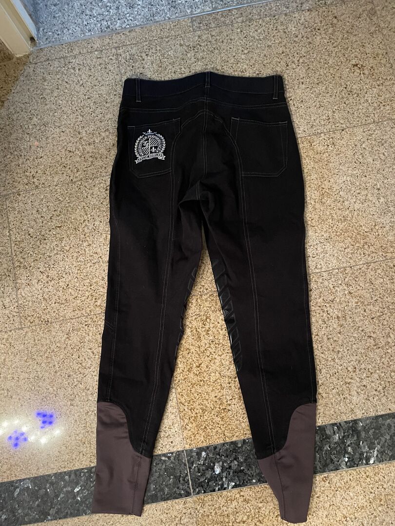 Bryczesy jeździeckie Felix Bühler w doskonałym stanie, z łatami na kolanach i gumowymi mankietami na nogawkach. W rozmiarze 38