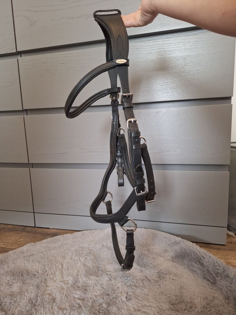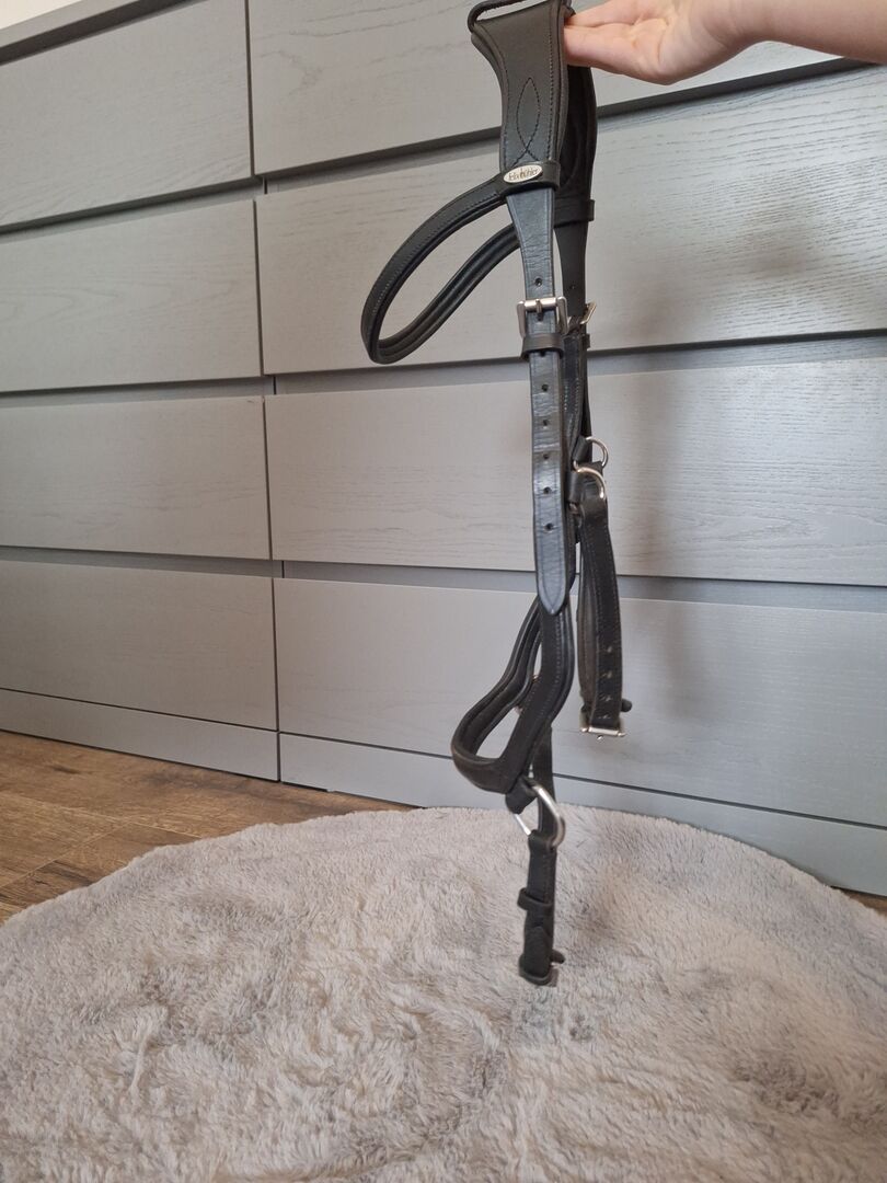 Felix Bühler Snaffle Anatomical Bitless - Witam, na sprzedaż jest wędzidło w bardzo dobrym stanie marki Felix Bühler w rozmiarze COB. Jest to uzda 3 w 1, ponieważ można jej używać z wędzidłem lub bez. Z jednej strony można jeździć z dołączonym paskiem na popręg i nos, jak pokazano na ostatnim zdjęciu. Inną opcją jest zapięcie lejców w D-ringach z przodu, dzięki czemu można jeździć bez gryzaka tylko nad nosem. Uzda ma anatomiczny kształt i dobrze wyściełany naczółek.