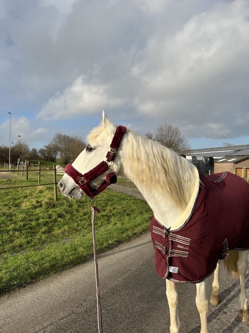 Ich verkaufe diese super gemütliche, winterliche Abschwitzdecke. Sie wurde nur ein Mal getragen, kommt frisch aus der Reinigung mit Zettel dran. Sie ist atmungsaktiv, wärmend und unterstützt im Abschwitzprozess super gut. Sie ist Kreuzbegurtet und hat einen Kunstfellkragen. Die Gurte und die Umrandung der Decke ist Bordeaux-rot/Gold. Eine Freundin hat das gleiche Modell in blau, sie benutzt sie nur und ist super zufrieden. Ich persönlich habe einfach zu viele Decken für ein Pferd und ich denke an der Decke könnte sich jemand anderes sehr erfreuen! Das Halfter und der Strick sind ebenfalls frisch gewaschen und nur 1-2 Mal getragen. Bei Interesse einfach eine Nachsicht schreiben