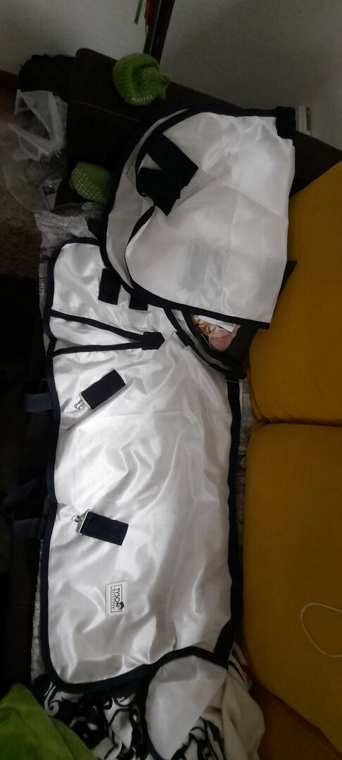 Flyblanket - Przymierzone tylko raz, za małe na mojego kucyka. Koc na muchy z częścią na szyję + zapasowa część na szyję.