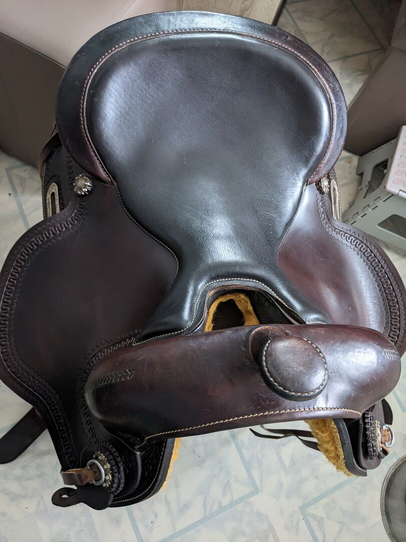 Freemax Short 5 fork treeless western saddle - Sprzedaje moje używane i ukochane siodło. Leżała ona przez ostatnie 3 lata. Teraz wreszcie musi się udać. Dodaję dwa nowe pasy. Używane widły 5 er, więc raczej szersze konie. Następne większe widełki byłyby dla koni zimnokrwistych. Siodło można jeździć tylko z podkładką korekcyjną, dopasowuje się do konia poprzez ciepło i jest po prostu wygodne jak cholera.