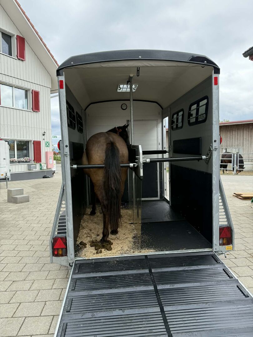 Fundamentalna klacz rasy Quarter Horse z sercem i talentem - Lokalizacja: Szwajcaria Na sprzedaż jest piękna klacz rasy Quarter Horse, urodzona 14.08.2022, w rzadkim i atrakcyjnym kolorze Grullo. Jej obecny wzrost wynosi około 148 cm. Posiada papiery AQHA i paszport konia, a dzięki procentowi fundacji wynoszącemu 92% jest również niezwykle interesująca do hodowli. Ultima zachwyca harmonijną, poprawną i zwartą budową, a także wspaniałą ekspresją. Jest zdrowa, przetestowana na 5 panelach n/n i biega boso. Jej charakter jest szczególnie przyjemny w obsłudze. Jest dobrze wychowana, przyzwoita, nieskomplikowana i bardzo chętna do współpracy. Jest uważna, zorientowana na ludzi i łatwa w obsłudze. Jej wyraźna "wola zadowolenia" i dobry podstawowy temperament sprawiają, że jest niezawodnym partnerem, który nie jest nerwowy i zawsze reaguje pewnie. Jest bardzo towarzyska w stadzie i dobrze radzi sobie zarówno w otwartej stajni, jak i w luźnym boksie. Jest również dobrze wychowana i bezproblemowa u weterynarza i kowala. Była regularnie szczepiona i odrobaczana, a także bez problemu opanowała jazdę z przyczepą. Ultima przeszła już sześciomiesięczny podstawowy trening i oprócz codziennej obsługi, jest również zaznajomiona z terenem, wyprowadzaniem koni i pracą w okrągłym kojcu. Jest utalentowana i zmotywowana, ma dobry ruch i najlepsze warunki do sportowej przyszłości. Podsumowując, AHF Ultima La Buena to obiecująca młoda klacz, która może być promowana sportowo, a także imponuje swoim charakterem jako niezawodny partner. Jej wysokiej jakości rodowód czyni ją również ekscytującą opcją hodowlaną.