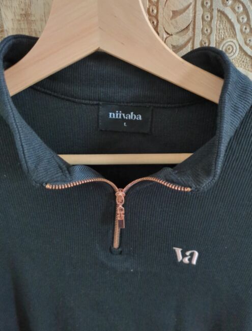 Funkcjonalna koszulka niivaba - Funkcjonalna koszula niivaba w kolorze czarnym z zamkiem błyskawicznym w kolorze różowego złota, rozmiar L. Kupiona na targach w grudniu 2025, założona tylko dwa razy. Dostępna również w rozmiarze M, kolor elastyczny. Nowa cena 99€