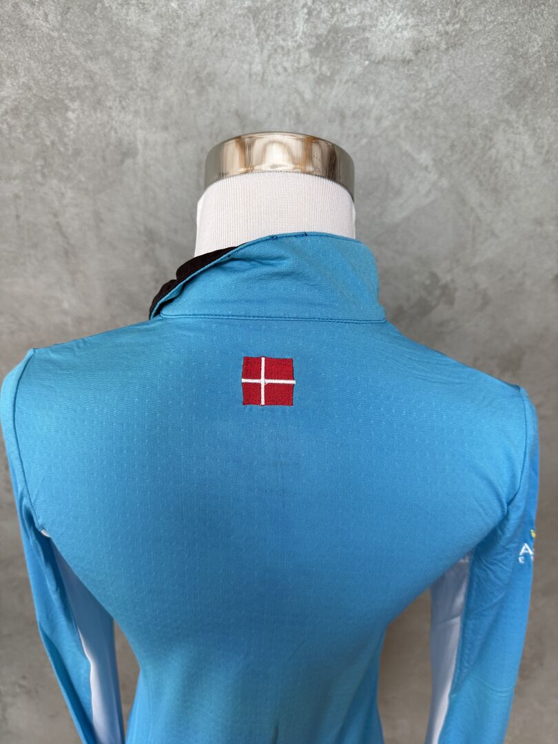 Funkcjonalna koszulka z długim rękawem Kastel Denmark, SPF 30 - Funkcjonalna koszula z długim rękawem mojej ulubionej marki Kastel Denmark w kolorze turkusowym z czarnym kołnierzykiem, mankietami i zamkiem błyskawicznym. Z filtrem przeciwsłonecznym o współczynniku ochrony 30, siateczkowymi wstawkami na rękawach. Niezwykle wygodna w noszeniu, szybko schnie, do wszystkich aktywności na świeżym powietrzu, jazdy konnej, wędrówek, golfa, tenisa lub po prostu dlatego, że jest ładna! Uwaga, niewielkie przebarwienia, ledwo widoczne, pod pachami. odpowiada niemieckiemu rozmiarowi 36