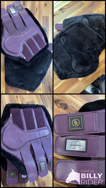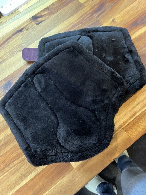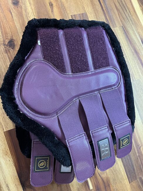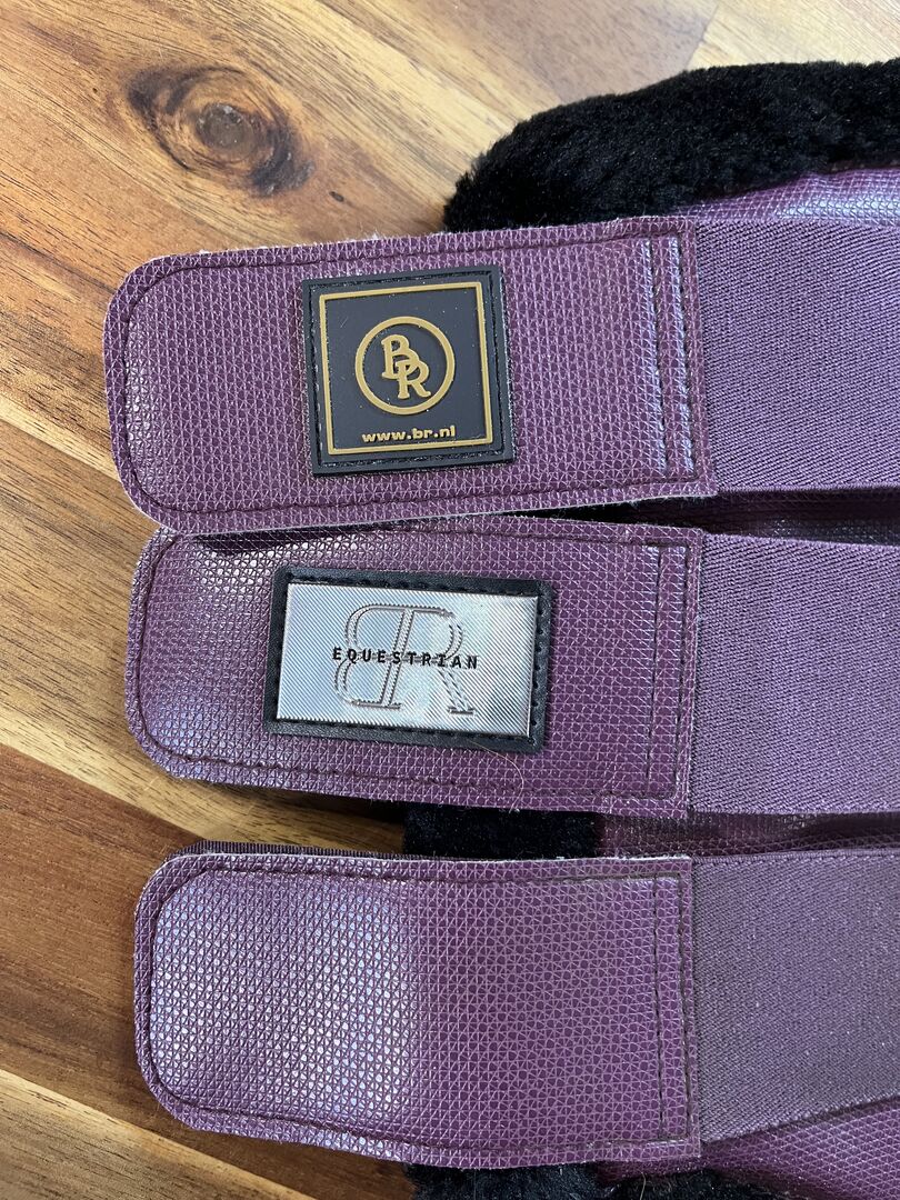 Getry futrzane - jak nowe - Jak nowe (mało używane) getry futrzane w rozmiarze L. Kolor berry/lilla z czarnym futerkiem. Futro jest w świetnym stanie, było używane może 3 razy, ponieważ nie mam podkładki pod siodło w pasującym kolorze.