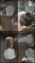 Getry i dzwonki - Na sprzedaż różne getry Wszystkie rozmiary wb 1. zestaw getrów 20 Euro 2. getry brązowe, szare, niebieskie 5 euro za sztukę 3. dzwonki do kopyt 2€