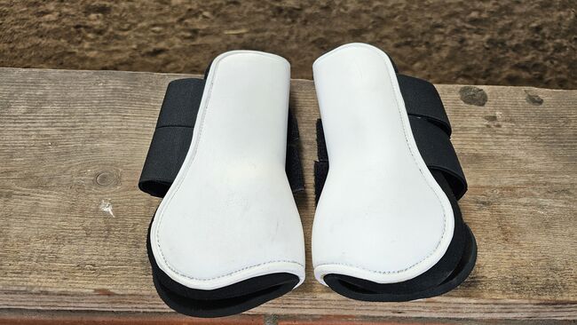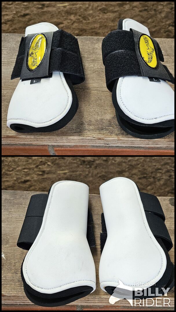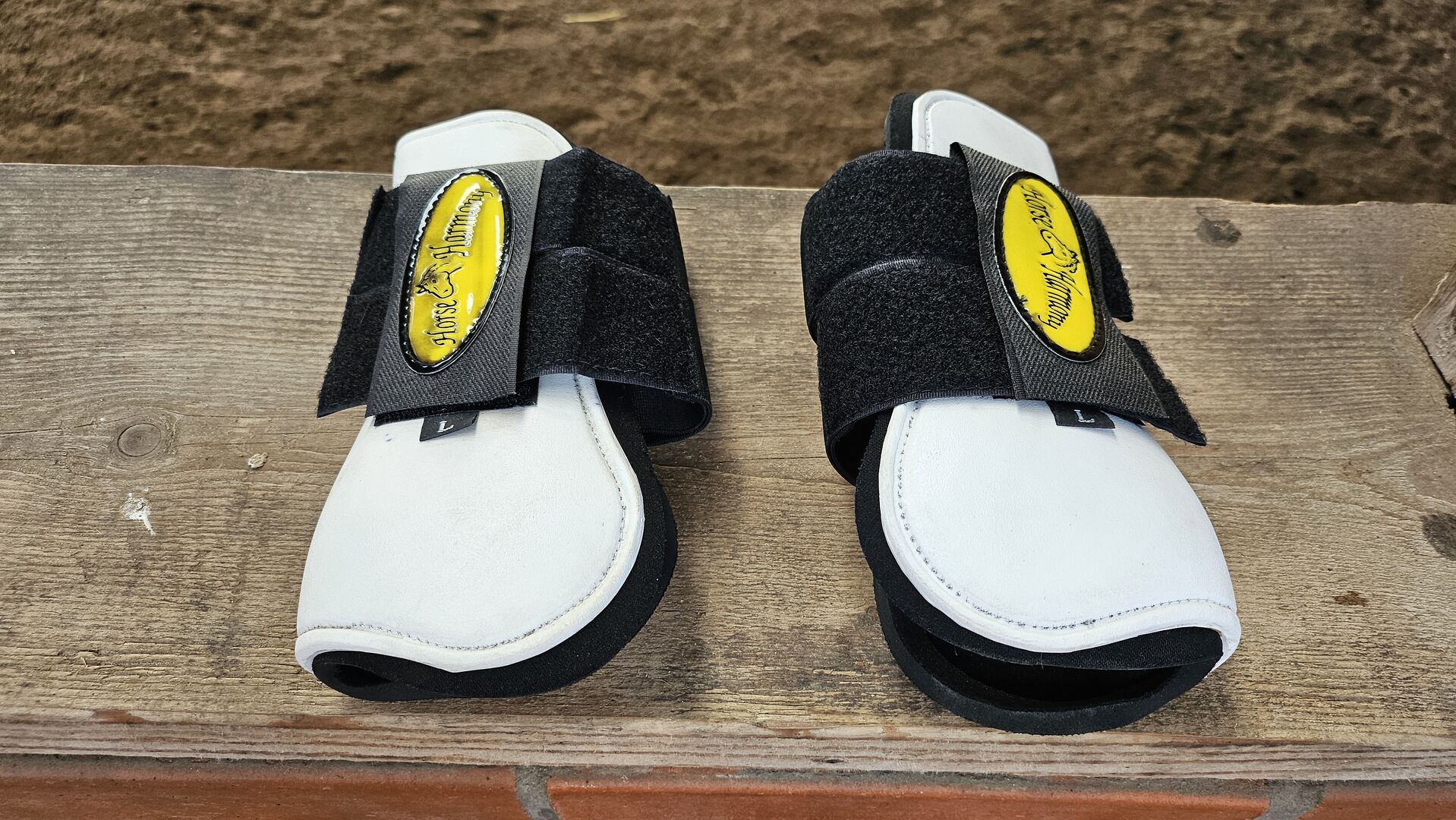 Getry L - Na sprzedaż nowe buty na ścięgna w kolorze białym, wewnątrz z gumy piankowej. Tylko jeden ochraniacz był na koniu do przymierzenia. Niestety za małe.